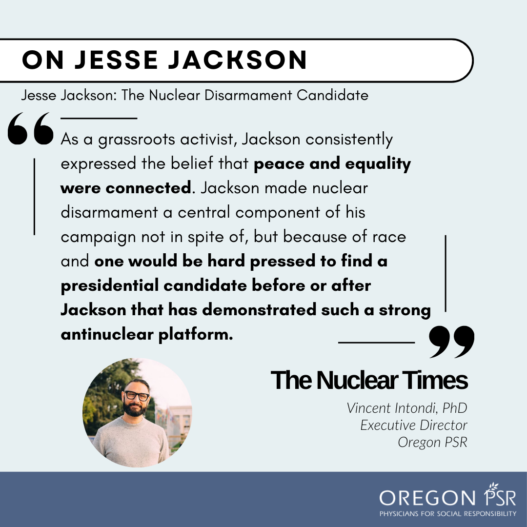 OPSR Executive Director Vincent Intondi reflects on Jesse Jackson’s legacy and why nuclear disarmament was central to his 1984 presidential campaign