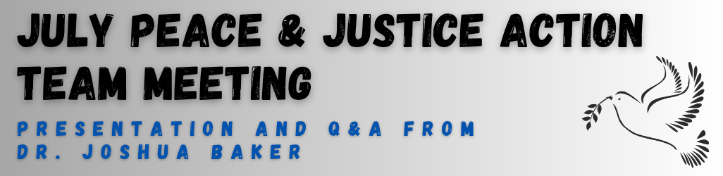Join us for our July Peace and Justice Action Team Meeting on July 30th from 5:30-6:30pm!